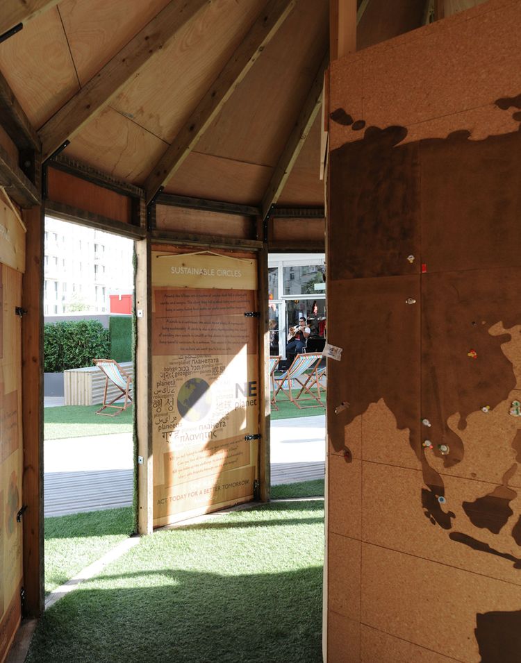 Sitting amidst the high density, concrete clad accommodation of the Athletes’ Village, BioRegional’s One Planet Centre provided a moment of small delight in the Athletes' recreation area.