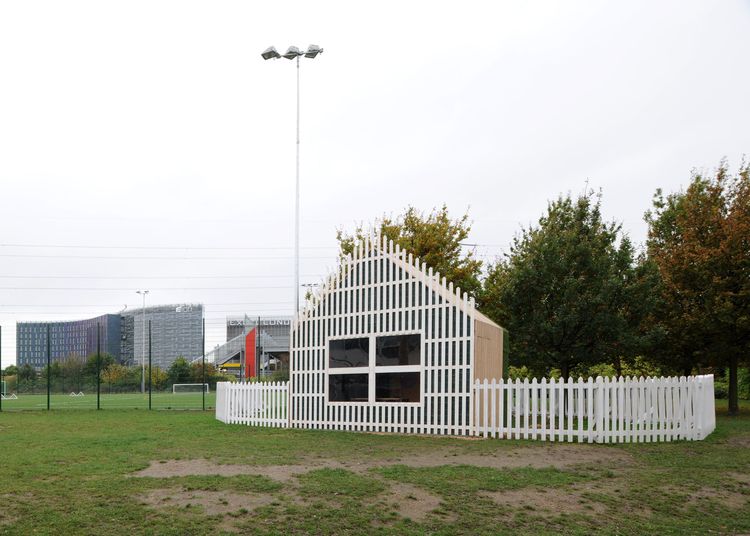 A demountable building made from recycled materials for athletes to meet and relax at the London 2012 Olympics.