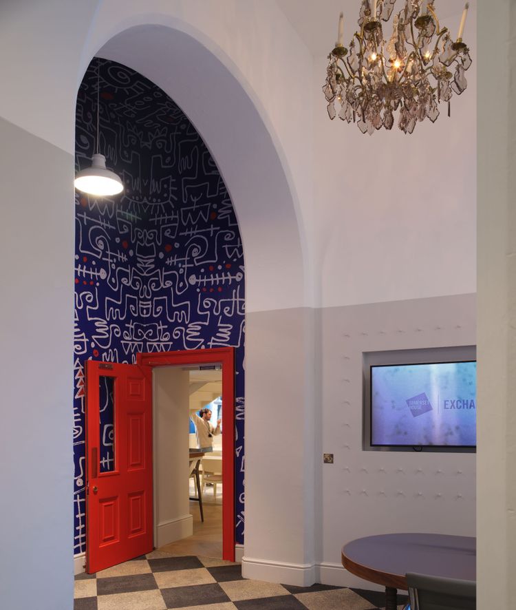 The transformation of former Inland Revenue Offices in the Grade I listed Somerset House into The Exchange, a new shared workspace and cafe bar.